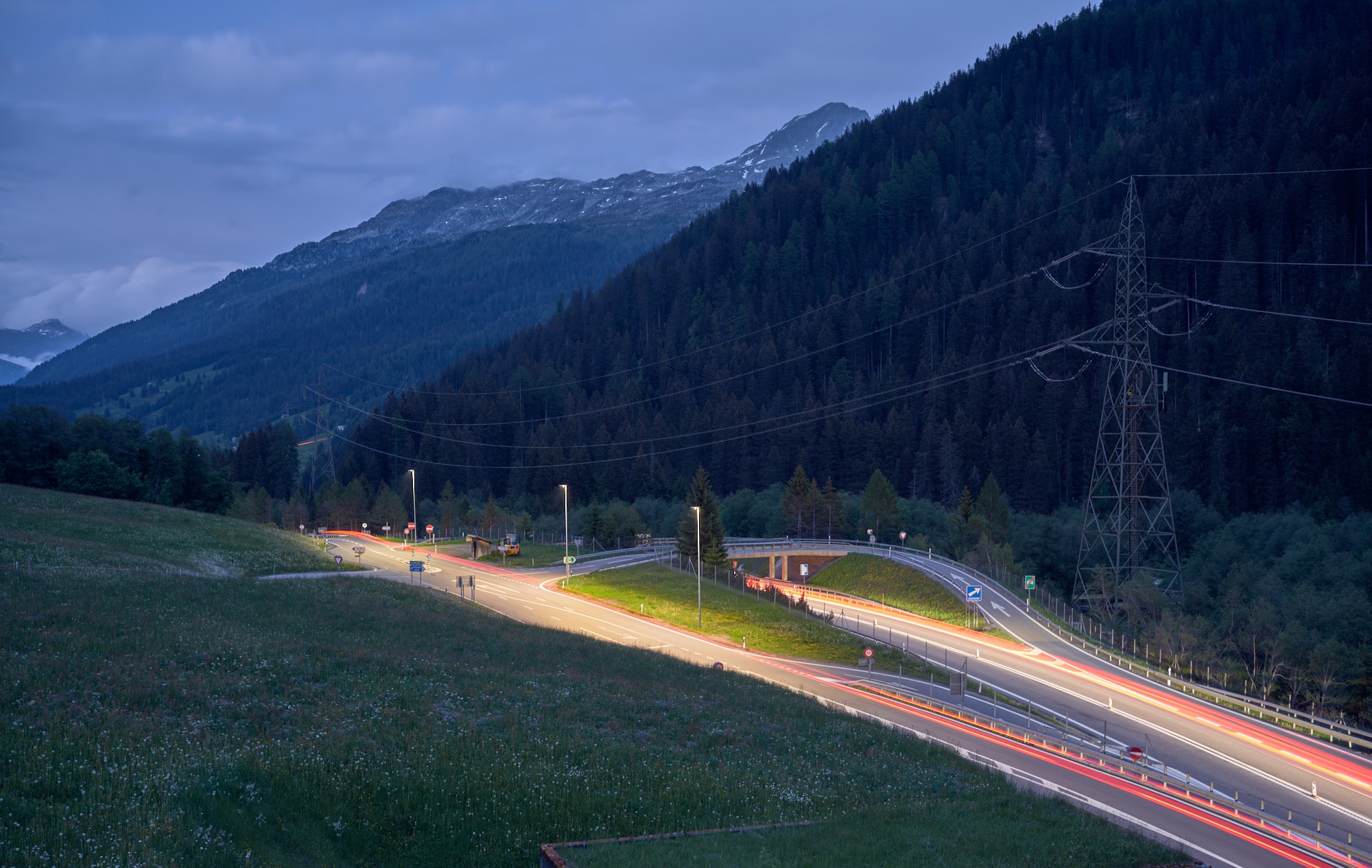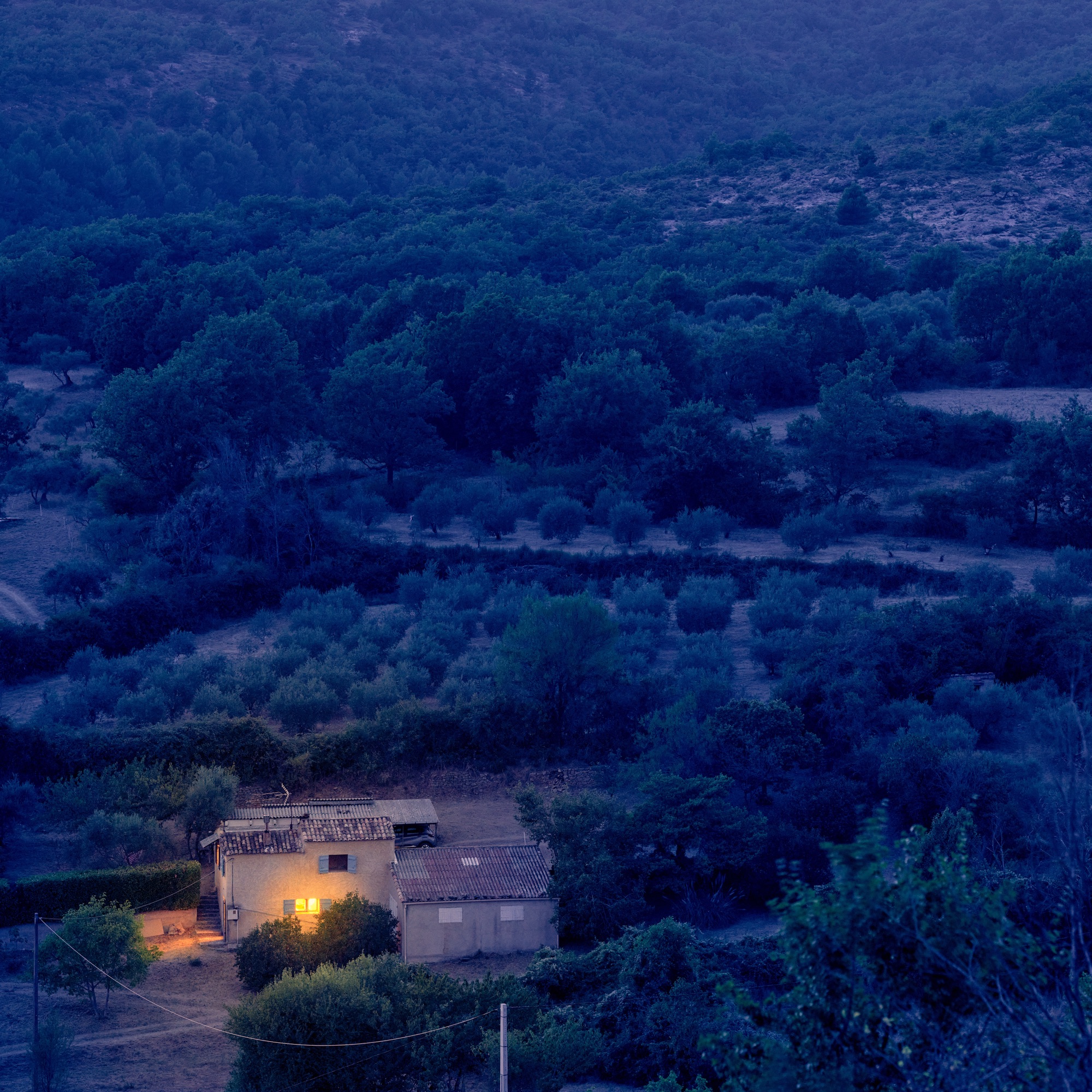 La série photographique prend forme à l’heure bleue et dans la nuit, lorsque les paysages de ville, de montagne, de campagne et de littoral se dérobent aux évidences du jour. Le temps semble ralentir, les repères s’effacent, et le paysage s’offre dans une présence plus intime, presque tactile.