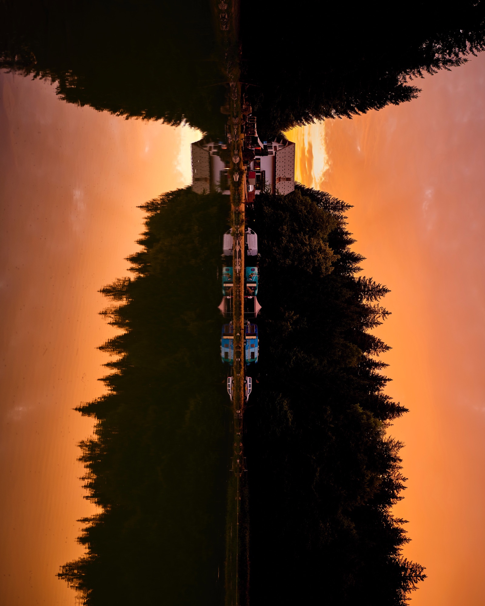 Le paysage cesse d’être stable, il devient image mentale, construction sensible. L’horizon bascule, les images sont retournées, pivotées, jusqu’à créer des compositions symétriques ou déséquilibrées, où l’orientation n’est plus immédiatement lisible.
