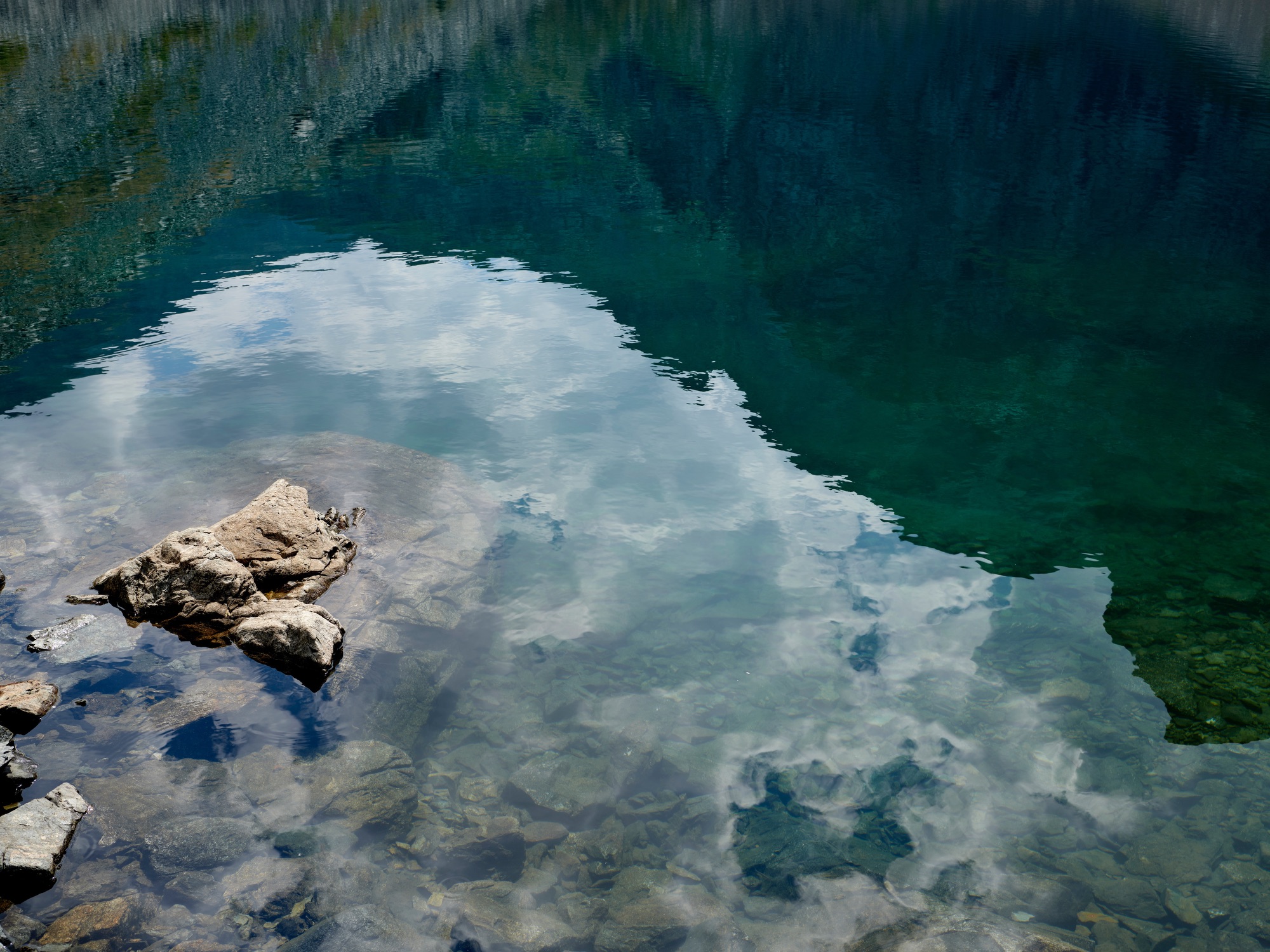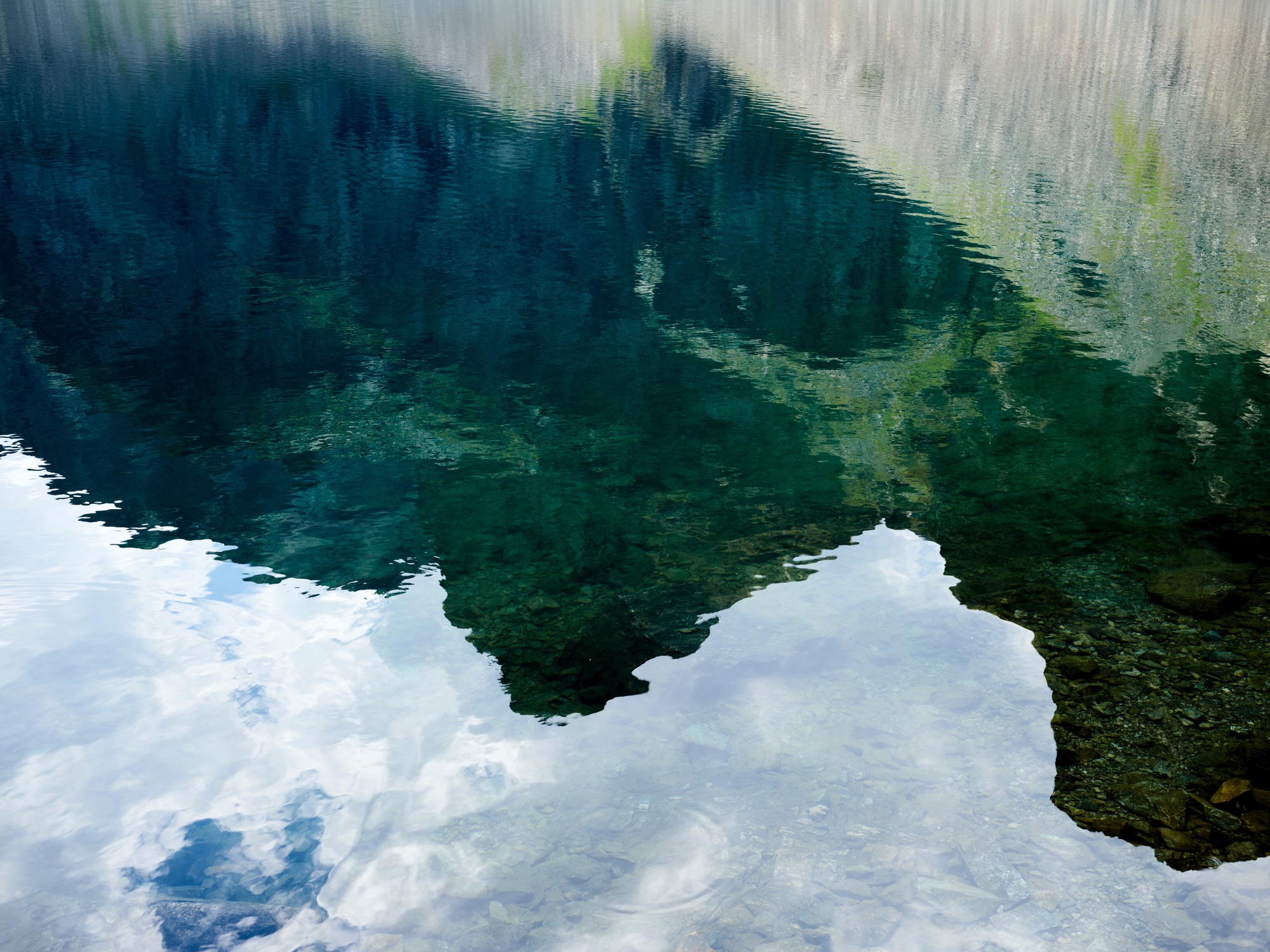 Le lac agit comme un seuil : il reflète, inverse, fragmente.